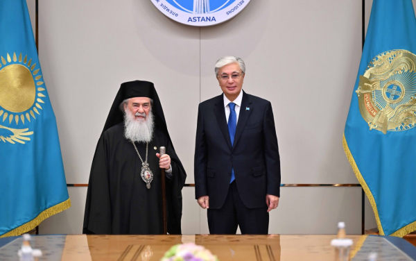 Глава государства провел встречу с Патриархом Иерусалимским Феофилом III, передает DKNews.kz.