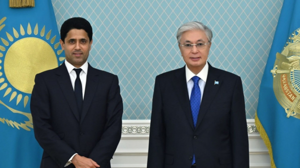 Касым-Жомарт Токаев поблагодарил Нассeра Аль-Хелаифи как члена Исполкома УЕФА и акционера клуба "Пари Сен-Жермен" за вклад в продвижение футбола.